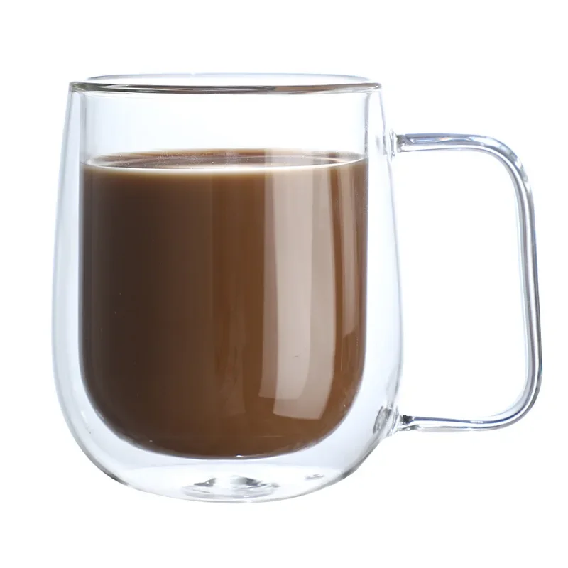 1Pc 250Ml 350Ml Double Layer Glass Cup with Handle Creative Transparent Double Walled Mug High Borosilicate Glass Cold Drink